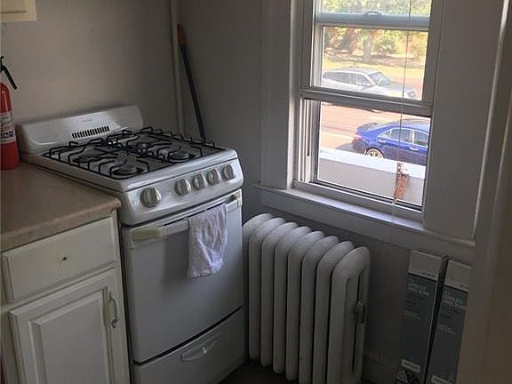 Clean second floor studio apartment ready for new tenant. Main studio room with two large closets with private kitchen and full bathroom. Heat, hot water and electricity included in the rent. One off street parking spot. Credit and income check required.