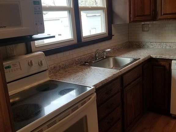 This 2 bedroom 2 bath house has so much to offer! Located on a 1/2 acre of land, the house features a finished basement, water softener, dishwasher, washer/dryer hookups, new windows, new doors, new furnace, new sink and counter top! Additionally featuring new floors, new well and freshly painted interior! Exterior of house will be painted this summer. No pets please! 2 large single stall garages are conveniently attached to the house while a large detached storage garage sits nearby! Tenant responsible for electricity, garbage and ground maintenance. Property has well and septic tank. Tractor in photos is not included. Rent just $1225 and security deposit is also $1225. Call today to schedule your showing! Tenant responsible for electric, garbage and all ground maintenance!