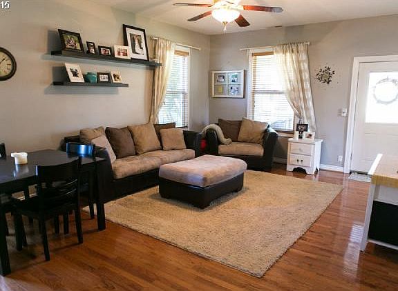 Sweet vintage Newberg home with charming front porch. Beautiful hardwood floors throughout the living rm & dining rm. Farm style kitchen with tile counters, tile flooring and gas stove. Laundry room off of kitchen. Remodeled bathroom. Updated double pane vinyl windows throughout. Two bedrooms on main level, large bonus room on upper level w/ potential to convert into a 3rd bedrm. Fenced backyard. All appliances stay!