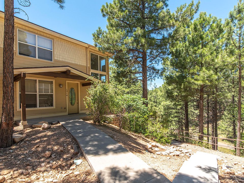 Move in READY Rio Town home! This end unit over looks the forest has been updated with brand new carpet in all the right places and fresh paint. 4 bedrooms, 1.75 bathrooms, 1,598 Sq.Ft. and detached two car garage makes for the perfect investment property, 2nd home or full time residence. The kitchen offers loads of cabinets for storage with a breakfast bar and over looks the dining area. Huge vaulted ceilings with loads of windows look out to the HOA green belt. The primary bedroom is located on the main floor with 3 additional bedrooms split upstairs. This home has room for all. Awesome located to NAU and CCC west campus, with the Urban Trail just outside the front door connects to ALL of Flagstaff.