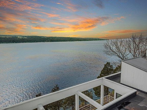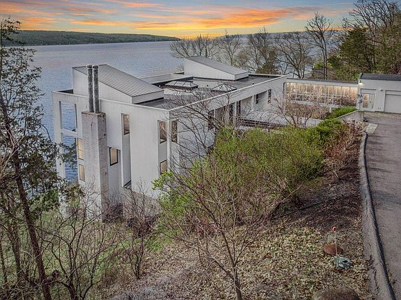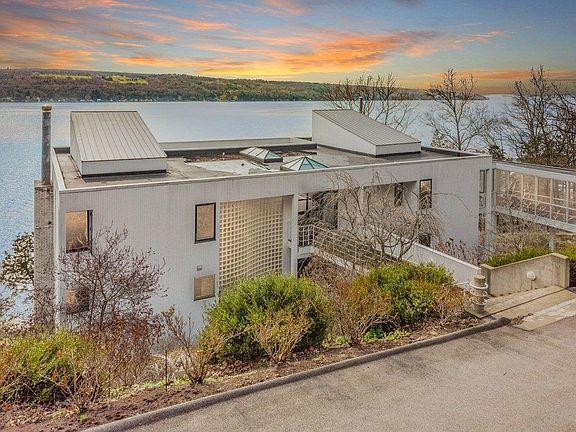 Top quality construction designed & overseen by owner/architect. Dramatic contemporary overlooking Cayuga Lake from the East w/unobstructed views from every level. Multi-level home with impressive entertaining space. Cross the bridge over garden courtyard with panoramic views to the West. Decks w/amazing views. Master BR suite w/private spa-like bath. Multiple fireplaces, glass walls, flexible living spaces. This home would be nearly impossible to re-create in a location like this with views & proximity to Ithaca College & Cornell. Live in a home that captures the best of what the area offers.