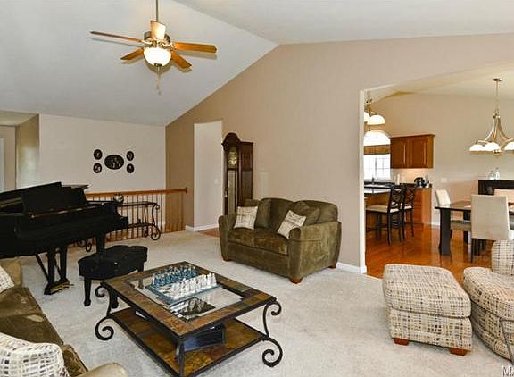 Open House Cancelled for 7/6. Fantastic, Vaulted,Open & Move-in Ready Ranch w/Walkout, Finished Lower Level! Total 4 BR's & 3 Baths. Brick & Stone front w/30 yr architectural shingle, beautiful landscaping complete w/raised bed gardens & mature landscaping for privacy. Fully fenced yard & a quaint arbor wrapped in grapes! Spectacular Finished Lower Level w/dramatic Tray Ceiling, Recessed Lights, striking Ceramic Tile, Wet Bar w/Cabinets & Glass Rack. Legal 4th BR w/walk-in closet, built-ins (dream craftRm now) & Full Bath. 20% storage remains. Large foyer w/Hardwood, vaulted GreatRm w/gas Fireplace. Open Kitchen & BreakfastRm w/Bay & Vaulted, Hardwood, Stainless Apps & Pantry. MainFloor Laundry. Vaulted MasterBR w/Bay, walk-in closet, luxury bath w/jetted tub, Shower & Double Sinks. Lots of Crown Molding, White Blinds & spectacular Window Treatments! Oversize garage w/service door. USDA financing available ($0 money down) Just 1 mi. from Hwy 61 off Piene Rd. Nice subdivision w/pool.