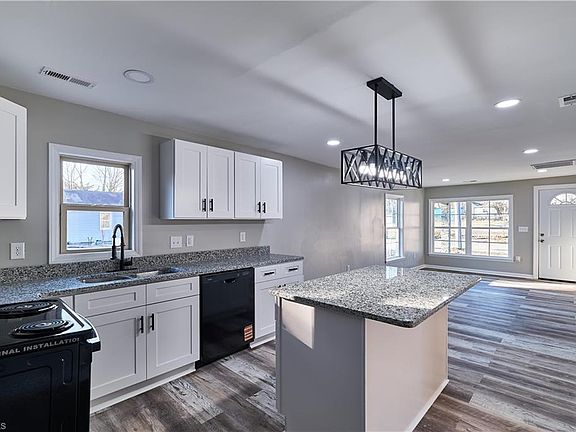 Welcome to 1314 Furlough Street, High Point, NC—a beautifully renovated 3-bedroom, 2-bathroom home with modern upgrades and classic charm. This move-in-ready home features an open-concept living space with stylish luxury vinyl plank flooring, fresh neutral paint, and contemporary lighting throughout. The stunning kitchen boasts granite countertops, sleek white cabinetry, a large island, and brand-new black appliances, making it the perfect space for cooking and entertaining. The spacious primary suite includes an updated en-suite bath, while the additional bedrooms offer versatility for guest or office. Step outside to enjoy the covered front porch and fresh exterior updates, including new siding, a bold front door, and eye-catching stone accents. Conveniently located near shopping, dining, and major highways.