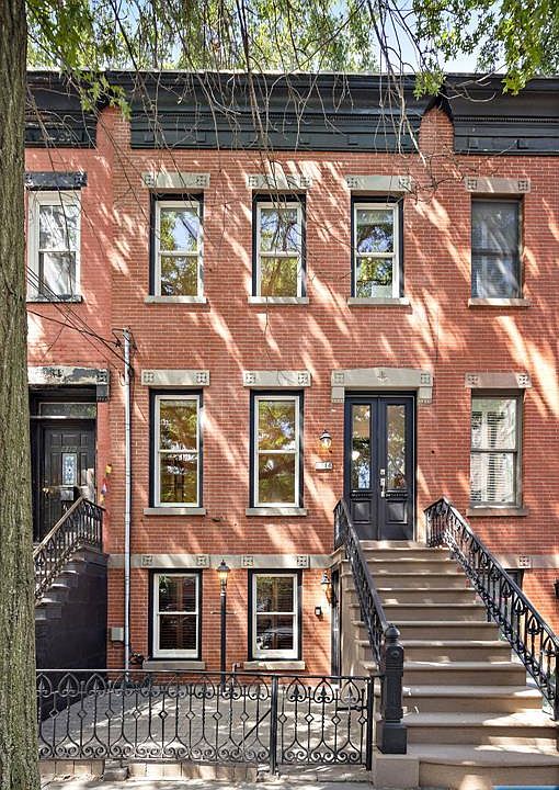 This 3 window wide, 17.5' x 100', uptown single family home has 4BD/3BA over 3 floors and a large basement. The home has been completely renovated and offers a large living/dining area and features a working gas fireplace w/ an original mantel, exposed brick, and a full bath. The renovated kitchen comes complete with plenty of storage, including a built-in buffet, pantry, and a working island with granite countertops complimenting the Bosch/Miele and Electrolux Icon appliances. The top floor has 3BD, primary w/ large walk–in closet, full bath, and another 2BDs. The fully rebuilt staircase takes you to the garden level w/ another office/bedroom, full bathroom, and a large garden level family room which leads to a professionally landscaped backyard w/ large pergola & BBQ with dedicated gas line. 1314 Garden retains many original features including a beautifully restored façade and stoop, original double parlor floor doors, original mantels newel post, and many original decorative moldings. The home provides heating and cooling through a state-of-the-art 3 zones of forced air cooling and hot water radiators. The basement has storage, room for mechanicals, and features a custom wine cellar w/ tasting table. The 1300 block of Garden Street retains the highly desirable & consistent turn of the century townhouse architecture and is conveniently located near the 14th St NY Waterway Ferry, 14th & Washington Streets shopping, restaurants, and NJT bus route. Rental parking ne