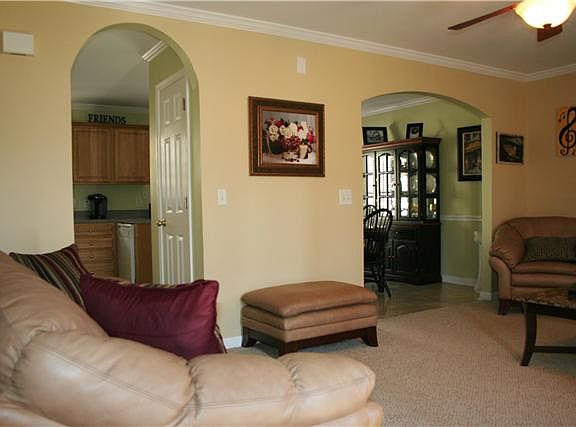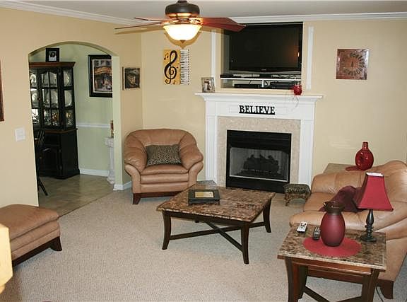 Home is neat ,clean and ready to show* Covered front Porch* Crown Mldg. in the Great room* Fireplace in Great Room* Arched entries into the Kitchen &Dining area. Could be 4 bedroom or 3 bedroom and bonus* Oversized garage with built in storage shelves.