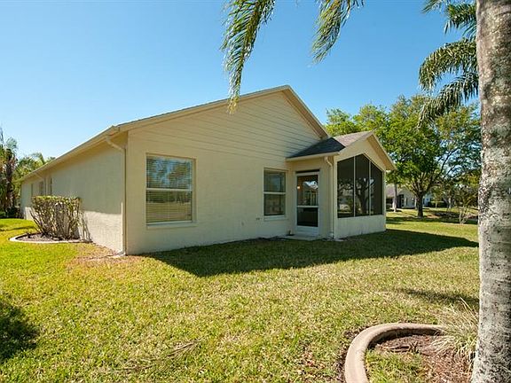 Welcome to paradise! Pride of ownership shows in this meticulously maintained 3br/2ba/2cg single family home offering captivating GOLF COURSE VIEWS! Nestled on a quiet cul-de-sac in Heritage Springs, Trinity's premier guard-gated (over 55) community! Showcasing nearly 2000SF, this well designed floor plan offers a tiled foyer, soaring custom vaulted ceilings, a charming wood burning fireplace, and views for days! The enormous eat-in kitchen boasts solid wood cabinetry, durable Corian countertops, a pantry, and breakfast bar. The split bedroom plan offers plenty of privacy for you and your guests. The oversized master retreat features a huge walk-in closet and an en suite bath with his & hers sinks, a jetted tub, and separate shower. The two additional bedrooms are both bright and offer ample space. The one with French doors would make a great home office! A large utility room with storage is an added convenience. The wonderful screened lanai with sweeping golf course views provides the perfect back drop for morning coffee or an evening cocktail! This highly sought after community has an amazing clubhouse and community heated pool and spa, as well as bocce ball and tennis. Residents have access in the clubhouse to a library with computers, arts and crafts areas, billiard room, restaurant with bar and more. Don't forget to bring your golf clubs!