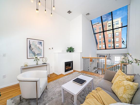 Voluminous NYC style Penthouse Loft unlike anything else on the market today in Hoboken. Enjoy soaring ceilings across this triplex home bathed in natural light from the multi panel pitched skylight. Take the elevator up to the PH and enter the home to an open contemporary kitchen with granite counters, stainless steel appliances, marble backsplash, wine fridge, center island, eat in dining area, and private terrace with NYC views. The next level offer a grand living room with fireplace, central air, hardwood floors, and leads to two separate bedrooms suites; one private in the lower back rear and one lofted above. Enjoy a massive in unit storage space below the living room, in unit washer dryer, and custom closets. Located in desirable uptown Hudson St convenient to the Hudson River Waterfront, NYC Ferry, parking garage (fee), Restaurants and Nightlife.
