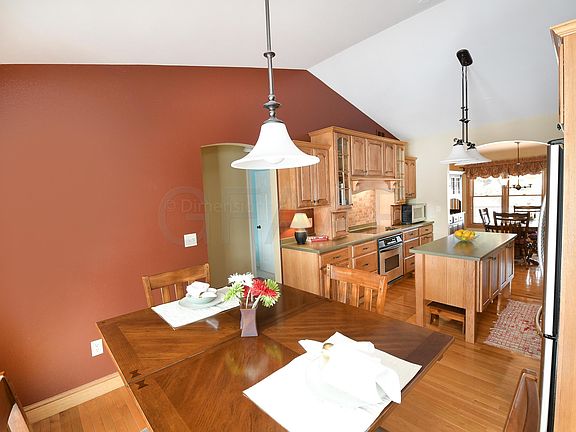 The front porch welcomes you as you enter this custom built ranch style home w/walkout lower level that opens to a large coulee lot. The main floor has beautiful hardwood floors,vaulted ceilings,gorgeous hickory kitchen cabinets,breakfast nook that opens to a raised covered deck overlooking the big backyard. The lower level is finished w/a full kitchen/bar area,great for entertaining, rec room,