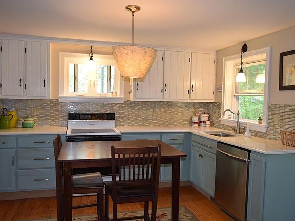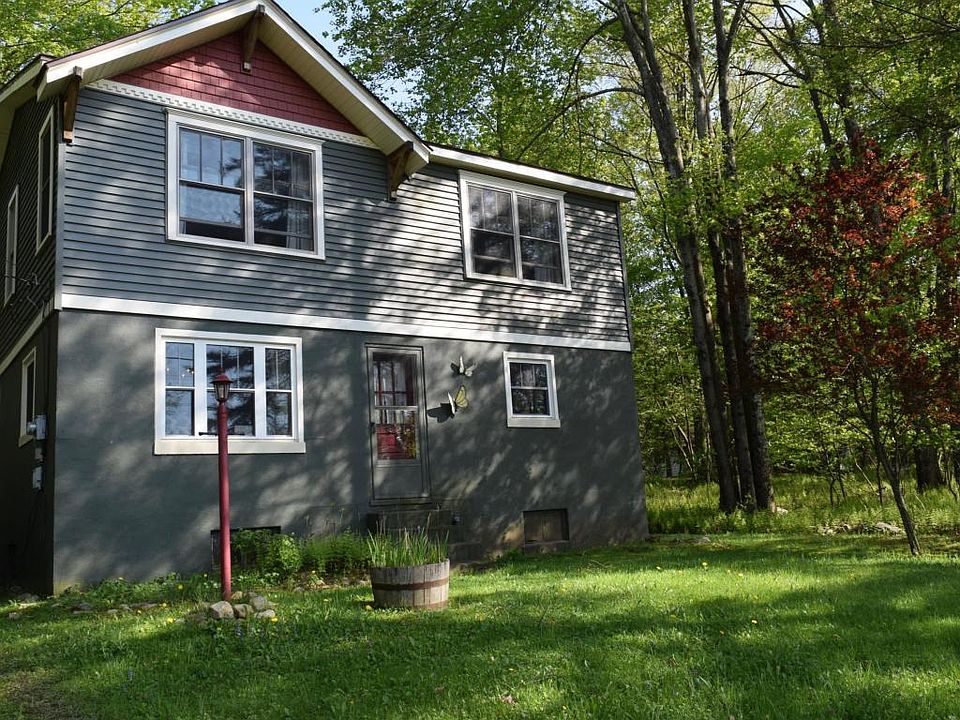 LAKE-VIEW!3 bedroom/2 bath 'Dream' cottage with spectacular lake views is just steps from the beach & is completely remodeled! Inviting open concept layout is warm & welcoming as you enter! Living-room/dining room offers a cozy brick wood-burning fireplace as it's centerpiece. You'll relax to a crackling fire enjoying great lake views through the picture windows that allow the natural light to enter. Authentic original wood floors & wood beams bring back the rustic charm of a true mountain cabin. Well designed kitchen boasts pretty glass tile backsplash & durable 'Cambria' natural stone, quartz counters! Upper level bedrooms are spacious & view the clear waters & unspoiled Blue Mountains of Penn Lake! Kitchen opens to deck with large backyard for entertaining guest comfortably.