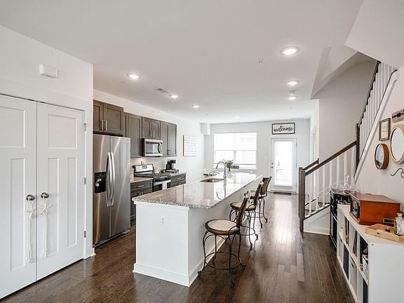 Welcome to this stunning end unit townhouse in like-new condition. As you step inside, you'll be greeted by beautiful hardwood floors throughout the entry level, creating a warm and inviting ambiance. The open floor plan allows for seamless flow and easy entertaining. The spacious living room provides ample space for relaxation and gathering with friends and family. The upgraded kitchen is a chef's dream, featuring an oversized island, breakfast bar, granite countertops, a gas range, and stainless steel appliances. Prepare your favorite meals while enjoying the company of your loved ones. Heading to the second floor, you'll find three bedrooms and two full baths, offering comfortable accommodation for everyone. The primary suite is a true retreat, boasting two closets, including a walk-in closet. The primary bath is well-appointed with double sinks and an oversized stall shower featuring bench seating—a perfect oasis to unwind after a long day. The upper level of this townhouse is a true gem, featuring a fantastic recreation room complete with a custom bar and a full bath. Step outside onto the amazing rooftop terrace, a versatile space that surrounds you with breathtaking views and serves as an excellent spot for entertaining guests or enjoying quiet evenings. Situated on a corner lot, this townhouse offers extra privacy and natural light. Additionally, it comes with a detached two-car garage, providing convenient parking and storage options. The property boasts over $50,000 in builder upgrades, ensuring that every detail has been carefully crafted to enhance your living experience. This townhouse is conveniently located close to shops and restaurants, allowing for easy access to amenities and entertainment. In addition to its outstanding features, this home is also part of an amenity-rich community that takes care of your lifestyle needs. The community offers the convenience of lawn maintenance, ensuring that you can spend your time enjoying the finer things in life. Across the street from this townhouse is "The Fred," where you can enjoy it's remarkable facility that includes a swimming pool, clubhouse, and a 24-hour fitness center. Take a refreshing dip in the pool on hot summer days, host gatherings and events at the clubhouse, and maintain an active and healthy lifestyle with the convenience of a fitness center just steps away from your front door. Don't miss out on this fantastic opportunity to own a townhouse in excellent condition within a vibrant community that offers not only a beautiful home but also a range of amenities to enhance your lifestyle. Schedule a showing today and experience the best of both worlds: a stunning home and a wealth of community offerings.
