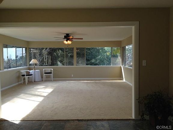 Beautiful Mid-Century modern custom built home with city light views and gorgeous sunsets. All new paint and new flooring and baseboards throughout. Kitchen has new granite counters, new stainless sink, microwave, dishwasher and built-in electric range and new ceiling fan. Hall bath has been completely remodeled with new bath tub, tile surround, new vanity, sink and granite counter. Living room with wood burning fireplace and large picture windows, large family/bonus room with windows galore to enjoy the view and sunsets. Indoor laundry room. Brand new roof. 2 car garage which is located by accessing the side road. Wonderful private large back yard with covered patio.