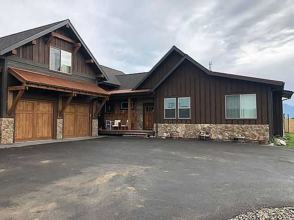 This is a very well finished home with unique features, located on 5 acres in beautiful Lower Valley. Every detail has been well thought out, from the upgraded utilities to the wide hallways and efficient design. The exterior is accented with lots of rough sawn beams and corten rusted metal accents. A thick hand scraped custom door greets you at the entry. Large 8" x 14" beams frame the open concept living/kitchen/dining area. 10"x10" cross tie beams accent the vaulted great room with large picture windows that view the Swan Range all the way to Big Mountain. The views are unparalleled and the house has been positioned to take advantage of them, along with incorporating a lot of large windows throughout. The kitchen has distressed, old world glazed custom cabinets, a barn wood range hood, farmhouse stainless sink, and lots of lights. There's a dedicated coffee bar, just adjacent to a large walk in pantry. The master bedroom windows wrap the exterior walls for awesome views. A tray ceiling has prominent 100 year old weathered beams that compliment the ship lap accent wall. Warm your feet on the radiant heat in the master bath, which is great on cold days. The vanity is a custom, distressed furniture piece with undermount sinks and wall mount faucets. There's a separate toilet room and nice walk in tiled shower. A free standing tub highlights the space with chunky beam shelves. The lower floor has 3 bedrooms, an office, and a separate computer room, with sliding barn doors and a cool live edge slab for the computers. There's 1200 square feet upstairs, which has a huge bedroom, custom bathroom with large tiled shower, game area, reading nook, and a 34' long bonus room. The mudroom has custom cabinets, lots of light, and a unique barnwood cubby system. The house utilizes a 5 ton heat pump coupled with a propane HVAC system for when it gets cold, 400 amp electric service, separate panel for future generator, sprinkler system, huge paved parking area, upgraded 2" main water line, tons of can lights throughout, radiant heat in master, and extra deep garage. The pictures really don't do it justice. Please contact me to set up a time to come view this beautiful house in person.