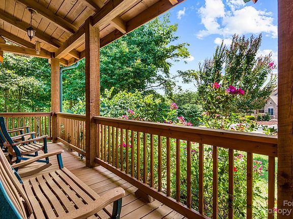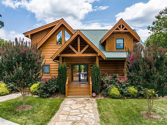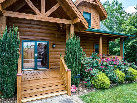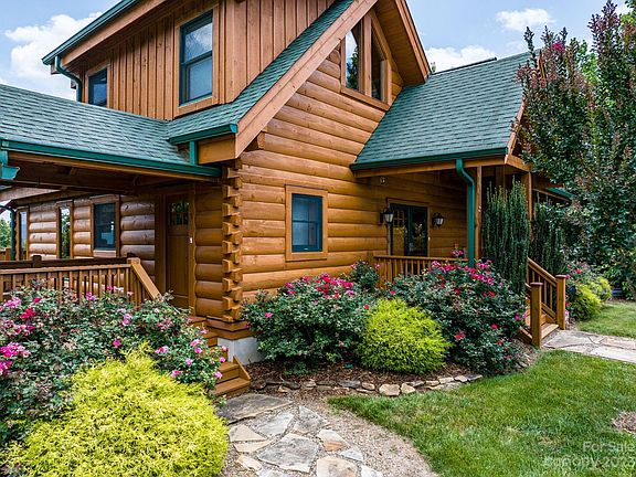 Custom built log home with long range mountain views in gated community! This home features an open floor plan, plenty of outdoor living space, and cozy wood features that you'd expect from a log home. The spacious great room with cathedral ceilings centers around a gas fireplace with stone surround and showcases fantastic views from the floor to ceiling windows. The kitchen is complete with a large island with seating space, granite counters & SS appliances. The views continue in the primary suite on the main level which has a full bath with double sinks, a WIC & its own screened in porch. Upstairs there's a loft space with two additional bedrooms and another full bath. The basement is the perfect spot for entertaining with its additional living space, custom bar area & a guest suite with full bath. Whether from the rocking chair front porch, back deck, back patio, or screened in porch, the stunning views will make you never want to leave!