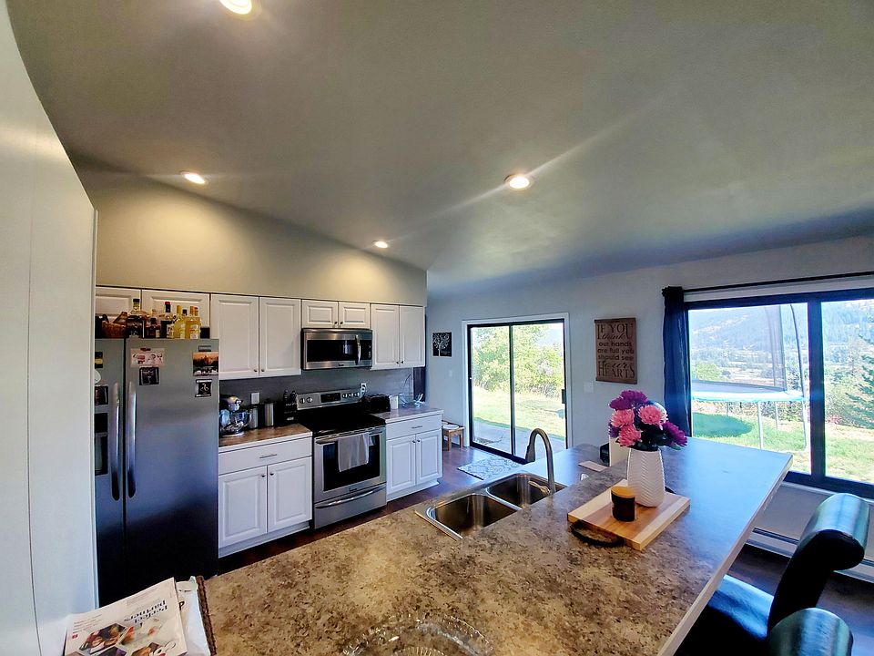 Here's you chance to own a delightfully remodeled home in St. Maries! Fantastic views overlooking town & sitting on nearly a half acre, this home will not disappoint! A large open living space featuring a rock fireplace, a beautiful kitchen & dining room offer great opportunity to relax & enjoy the views. Everything is on one level and you will find a spacious primary bedroom with remodeled attached bathroom. Other features include a large pantry and laundry room as well as a second bedroom & fully remodeled bathroom. There is a third detached living space with water, heat & a/c that could be an extra work space, guest room or whatever your heart desires. Exterior features include a courtyard, covered patio, detached 2 car garage & additional detached garage/storage. Great location!