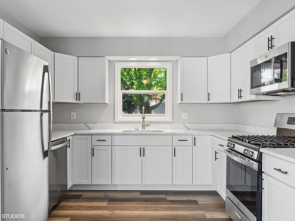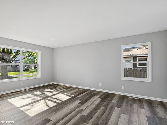 New, New, New! New driveway, Roof, Siding, Windows, Kitchen, Cabinets, Quartz Counters, Stainless Appliances, LVP flooring, Carpeting, and both Bathrooms have been remodeled! Also, new Furnace and Central Air Conditioning. Massive garage, Clean Full Basement!