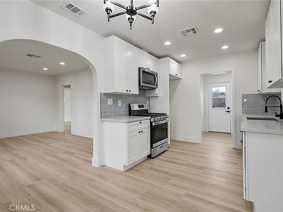 Just remodeled from top to bottom by HGTV's Jessie Rodriguez, host of Vintage Flip; This adorable home is ready for it's next chapter. Set on a perfectly tree-lined street, every detail has been addressed. The garage and gated driveway provide ample off-street parking, and the new front landscaping adds plenty of curb appeal. It's not just cosmetic updates though, other upgrades and improvements include a new roof, new central HVAC ducts, new energy-efficient dual pane windows, new tankless water heater, new plumbing, and new electrical throughout. Inside you'll find a spacious family room and charming dining space with gorgeous natural light from the bay windows. The kitchen is appointed with new stainless steel appliances, new soft-close cabinets, and gorgeous quartz counters. A large separate laundry room provides access to the backyard, along with plenty of room for additional storage. Each of the two bedrooms feature ample closet space, and sliding glass doors that open to the backyard for phenomenal summer breezes in the evening. Centrally located in the hallway between the two bedrooms is the fully remodeled bathroom, with it's breathtaking floor-to-ceiling tiled step in shower. Outside, you'll find an enormous backyard, with mature trees, and space for anything you can imagine, maybe even an ADU? On top of all that, the convenient location offers quick access to both the 10 and 215 freeways, along with numerous shopping and dining options so close that you could even walk to them!