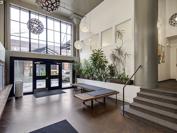 Enjoy the view from this spacious, South facing unit at Irving St. Lofts in the Pearl District's historic warehouse neighborhood. Surrounded by restaurants, art galleries, espresso, craft brewing, high-tech, you will fall in love. A true artist's loft with unique "EX" zoning allowing a LIVE/WORK space. Features include; 11 ft. ceilings, luminous interior, deeded parking in garage, large storage unit, amazing rooftop deck area, easy access to MAX light rail & Portland Streetcar, Walk Score 99!