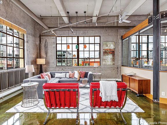 Irving St. Lofts corner penthouse in heart of Pearl. 1925 building seamlessly mixing the old & the new. Beautiful views from 3 walls of windows. Warm industrial design. Stained concrete floors & ample built-ins. Full kitchen w/ sub-zero fridge. Bedroom w/ half glass walls maximizes natural light & adds privacy. W&D. Secure entry w/ large foyer. Parking space. Shared roof deck. Live/Work building. Walk to amenities and restaurants.