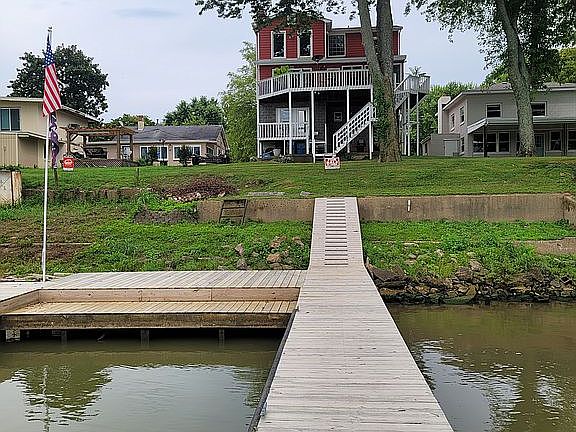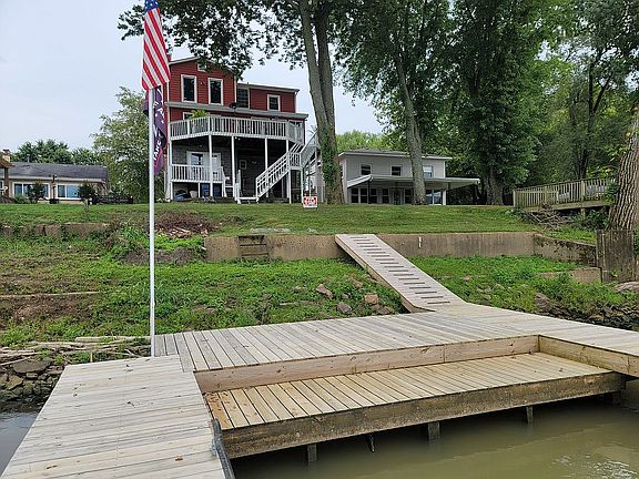 An amazing Riverfront property is now for sale for under $500K. Imagine waking up every morning to expansive views of the river and a national park in your backyard. At night you’ll enjoy beautiful sunset views that are always changing and never get old. This 4 bedroom, 3 full bath house will be sold turnkey for the next lucky family or it could be used as an Airbnb. Enjoy the river views from the upper deck that stretches across the back of the house, the lower patio, the sunroom or why cooking in the kitchen. This house has been completely renovated with the exception of the Kitchen. This house was purchased in 2012 and since then completely repainted inside and out, new roof was put on in 2012, new HVAC in 2014, sunroom completely rebuild and new windows and doors were installed in 2014, new Trex front staircase in 2017, new docks in 2018, security cameras, complete entertainment system inside and out, keyless entry and many more options. The house has 2 word-burning fireplaces and they have both been updated from their original look. All three bathrooms have been updated. The docks are second to none, you won’t find any better on the river. Freshwater has been run to the docks and conduit for electricity. The docks have a unique lower platform for easy entry with a kayak or paddleboard. The garage is a 2 car garage with one side being a walk-through to the river. The house has a dumb waiter from the garage to the kitchen so when you get home from the store you can send your groceries up.