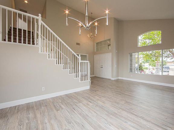 Cul-de-sac home with 5 bedrooms 3 full bathrooms & Pool! New flooring paint and fixtures throughout. Large Kitchen features Quartz counter tops, New stainless steel appliances, Island & Pantry. Kitchen opens up to family room with upgraded Fireplace. Downstairs has 2 bedrooms, Laundry room, grand entry with vaulted ceilings Dining & family rooms. A spriral stair case leads up to the master sweet w/large bedroom, walk-in-closet plus huge master bathroom w/ new flooring, quartz counter tops, plus soaking tub and shower. Additionally there are 2 upstairs bedrooms with updated Jack/Jill bathroom. Entertainers back yard boasts newer pool/spa w/Slide in pool lounging area w/room for umbrella, large patio area and grassy area! Great location close to shopping and parks!