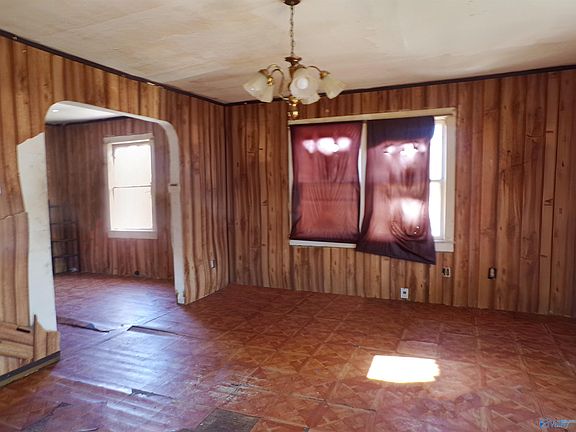 Home for sale with a detached garage that has an apartment above it. Home has 2 bedrooms, one bath, living room, dining room, kitchen, covered front porch and some fencing.