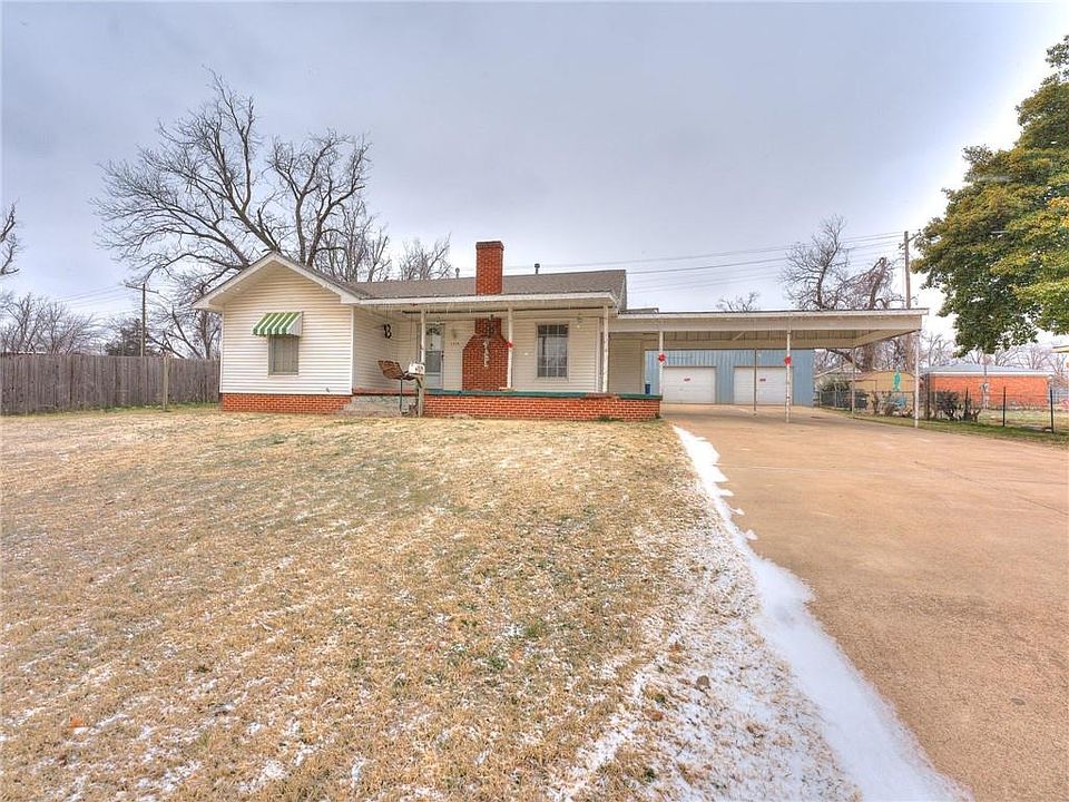 Delightful 3 bed, 1 1/2 bath home with wrap around porch, located in a well-established neighborhood in Chickasha & within walking distance of USAO. Recently renovated (2018) & updated with new Central Heat & Air, replaced ceiling, new recessed lighting, kitchen tile, tankless hot water tank, interior paint, and new plumbing from basement to the tank. New roof in 2021. Huge insulated shop with concrete floor out back that has electric plus a gas hook-up for heater (you'll need to supply the heater for the shop). Schedule your showing to see this home before it's gone!