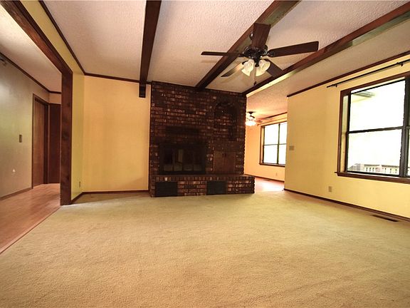 Experience the beauty of this 5.39acre park-like setting in Pea Ridge! This acreage is tucked away and secluded, but just minutes from the town center. The property has amazing potential with lot's of character & charm & presents the perfect opportunity to use your imagination to transform this home into something that will reflect your personal style & needs. The property features 4 bedrooms & 2.5 baths, along w/two spacious living areas. The main living room is complete with a wood-burning fireplace and beams. The kitchen is spacious, offering ample cabinets and a stylish brick wall accent. Adjacent to the kitchen, you'll find a dining area perfect for gatherings. The main floor includes the primary bedroom, along with two additional bedrooms & two bathrooms. The walk-out basement includes a comfortable living room w/built-in cabinets, one bedroom with a half bath & large walk-in closet, plus a generous storage room. This property is a great opportunity for someone ready to put in some work and make it their own!