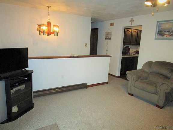 Charming Raised Ranch in Greater Johnstown School District. Main level has Foyer w/ laminate flooring, carpeted living room w/ sliding door to deck, kitchen/dining room combo has breakfast bar,ceiling fan & wood cabinets.Carpeted Master bedroom w/ closet, 2 additional carpeted bedrooms & full bath w/ tub/shower combo & vanity. Lower level has family room w/ laminate flooring & 2 closets, laundry/furnace room with hook-ups & tub & 3/4 bath. Integral 2 car garage.Fenced yard. Deck.Ask about a one year home warranty. Call today to schedule a tour!