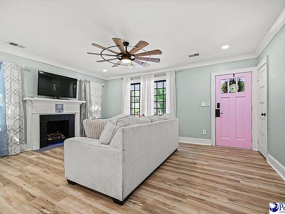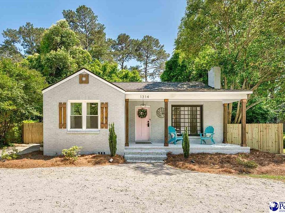 This charming, immaculately restored, 1950s bungalow in the heart of Florence is a MUST SEE! Enter this solid brick home through the period front door on the adorable front porch with large picture window into a “Smart Home” with all the bells and whistles! The open concept living room with new gas logs in the classic, original fireplace leads to an airy kitchen and dining area featuring a smart refrigerator and smart gas range which both convey. Listen to music on your fridge while preparing meals on the quartz countertops using the farmhouse sink. Stay cool with the new HVAC system featuring a smart thermostat, while the gorgeous new bathroom is fitted with a Bluetooth speaker. The home has gorgeous, updated lighting and remote controlled ceiling fans throughout. Seamless luxury vinyl plank flooring and new windows brighten the home. Not only are the visible features alluring, but underneath, the duct work, plumbing, and electrical features are all new! Outside, the beautiful, fully fenced, green space features a sitting area in the shade, and 2 new identical 12x16 loft barns provide added storage. Schedule a showing today. This rare find will not last!