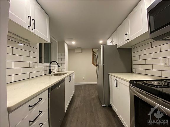 Newly renovated two bedroom, one bathroom basement apartment! Beautiful corner lot lined with mature trees. This unit does not feel like a basement! Separate entrance with full size bathroom, tub and dedicated laundry room with full size washer and dryer. Kitchen is upgraded with quartz countertops, subway tile backsplash, and brand new stainless steel appliances. Both bedrooms, kitchen, and living room have upsized ~3'x3' windows to bring in natural light. Rent is almost all inclusive, tenants just have to pay hydro in addition to monthly rent. Located in Queensway Terrace South, near Ikea and many restaurants, several schools, and steps from Baseline Road and associated transit options. Three minute drive to Pinecrest on-ramp 417. Available immediately. Parking potentially available, please inquire. Rental application, credit score check, and proof of employment/pay stub required for all inquires.
