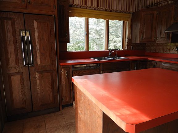 This home is located on 7.10 acres and the lot goes to the Saranac River. Fireplace in living room with sliding glass door to deck. Kitchen has wooden cabinets with Island. Full basement with access to 2 car garage. There is a 12 X 14 room with paneled walls in basement. The older barn on the property needs work. Very private.
