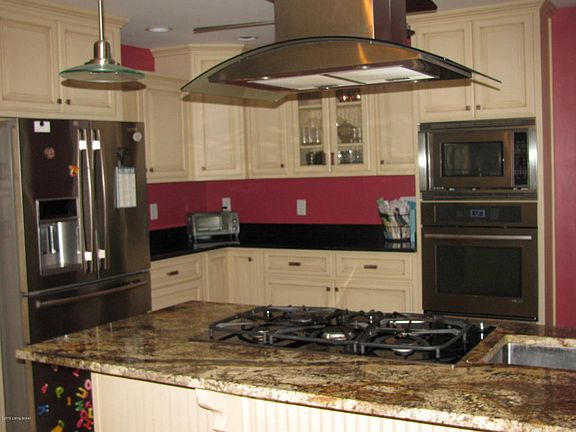Desirable ranch loaded with updates across from Joe Creason Park and just down from the Louisville Zoo. Features include 1500+ sq. ft.,3 BR's 2 full bathrooms, 2 F/P's and much more. The kitchen was completely remodeled in '13 and has French style/creme colored cabinets and granite counter tops including a new breakfast bar add on. A Jenn Air refrigerator and gas range remain. Hardwood flooring runs throughout the kitchen, dining area, hallway, formal living room and all BR's. Florida room off the kitchen was also added in '13 and has a cabinet housing a front loading washer and dryer. Formal living room w F/P as its focal point. Master BR has a private bath with shower. Basement is mostly finished w a family room 2nd F/P, 2 other rooms and an unfinished area. 2 car detached garage. (Garage doesn't have a door) Back yard is enclosed by a chain link fence, wood deck was added in '13.