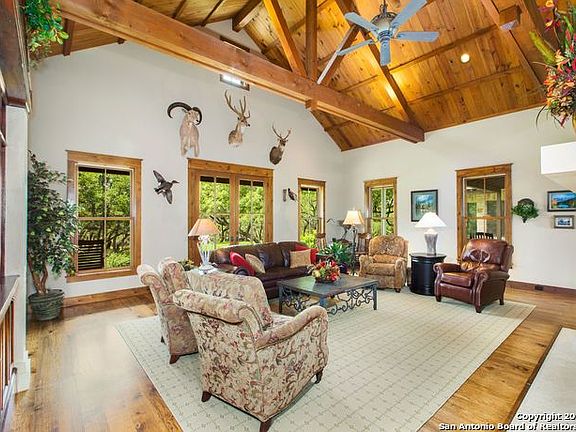 A breathtaking Hill Country estate nestled underneath a canopy of native trees - Live Oaks, Black Walnuts, Lacey Oaks, and Indian Cherry, to name a few. This 5000 SQFT+/- custom home built by Greg Boyer features four bedrooms, three bathrooms, and one half-bath. A guest suite is detached from home to ensure ultimate privacy for company. Above the guest suite, you will find a bonus room currently being used as an exercise area. Remarkable finish out and attention to detail. Custom windows and custom doors. Kitchen boasts DCS Fisher + Paykel and Miele appliances along with an R.O. system in kitchen and master bathroom. A climate controlled wine cellar that accommodates roughly 1500 bottles adjoins the dining room. Home is wired for sound throughout including patio. Property contains a $12,000.00+/- lightening protection system for both the house and front gate. Enjoy the beautiful Texas evenings on the covered patio overlooking the tranquil backyard and fire pit. Outdoor kitchen with DCS grill, sink, and gas burner. The estate is wildlife exempt. Porches, carport and garage encompass approx. 3000 SQFT+/-. Horses welcome! Three stall barn (approx. 3325 SQFT+/-), tack room with revolving saddle-rack door, ample storage, bathroom, wash rack with hot and cold water, and round pen. One paddock is approximately 8 acres while the other is approximately 10 acres. In addition, the property features two 3,000+/- gallon water storage tanks.