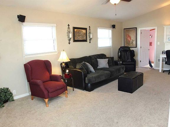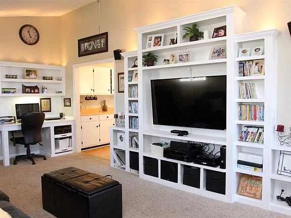 Nice 1704 sq foot ranch with 400-+ additional finished square feet in basement. Lots a built-ins updated and remodeled. Open kitchen dining room with snack bar and updated appliances including double ovens, dishwasher, Family room has beautiful stone fireplace, built in desk and entertainment center. Seller has opened up doorways and remodeled kitchen for the open concept. Home offers 4 bedrooms and 2 baths including an awesome loft bed. ( Seller will remove if buyer request).. Partially finished basement with built-in entertainment center. Laundry room has a laundry chute and laundry tub. Amazing storage in unfinished basement with walls of shelving for storage tubs. 2 car garage with updated insulated doors. Nice patio in fenced in back yard. Storage Barn too!!! Nice landscaping and circular front driveway. New Dishwasher & Hot Tub Included. Water Softener Hook-ups. ( Softener excluded) One year Home Warranty.