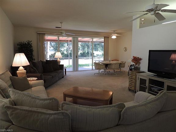 Sunny, Bright, Spacious first floor End Unit Pembroke Coach Home (Unit F-1) 3 BR, 2 BA provides coveted Golf Course view, Turnkey Furnished, Furnace-AC replaced in 2016, Total Area 2220 Sq. Ft., with Extended Lanai, and one car Garage. Short walk to Condo Pool and Clubhouse. Minutes from Gulf beaches and Mercato shopping. Easy to show and see!
