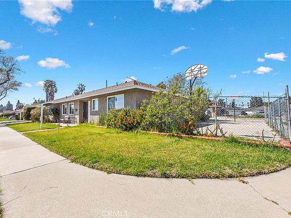 Marvelously located on a large corner lot, this four bedroom, three bath home has it all including two Master Bedrooms! The tiled entry invites you into the dining area and kitchen which feature recessed lighting, ceiling fan, built-in pantry and a built-in microwave about the stove. Laminate flooring covers the living room and extends into three of the four bedrooms. Also in the living room is a beautiful brick fireplace, more recessed lighting and a dual paned slider to the patio-covered backyard. The oversized master bedroom is privately located on the opposite side of the home, away from the other three bedrooms. It features laminate flooring, three windows, ceiling fan and a spacious en-suite master bath. Another great perk is a separate laundry room inside the home! Finally, a long driveway leads to a detached garage which is adjacent to the large backyard with covered patio, large trees offering plenty of shade and a private basketball/volleyball court within it's own chain link fence. Don't miss out on this great opportunity; it won't last long!