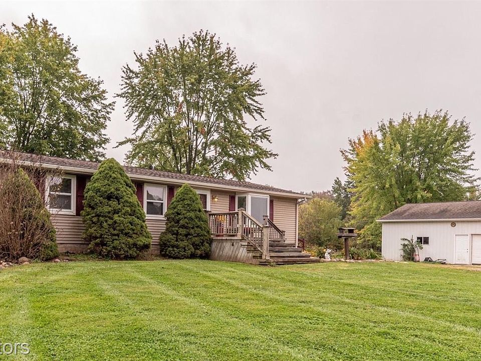 An amazing home on 10 usable acres being offered by the original owner whom has taken immaculate care of it. This 3 bedroom, 2 full bath ranch has everything! Hardwood floors are in the kitchen and dining room along with newer carpet throughout. Watch the wildlife frolic and play in the fully enclosed four season room (w/propane heater) or on the covered deck. The primary bedroom has an ensuite with a washer and dryer. An additional laundry hook up is in the basement. The Garage/Pole Barn is a mechanics dream with enough space for parking, a workshop, its own 220 line, a wood burning heating system and generator hook-up. Come fall in love with your own private paradise. Updated windows in 1991, roof 2012. Square footage does not include four season room (350sqft).