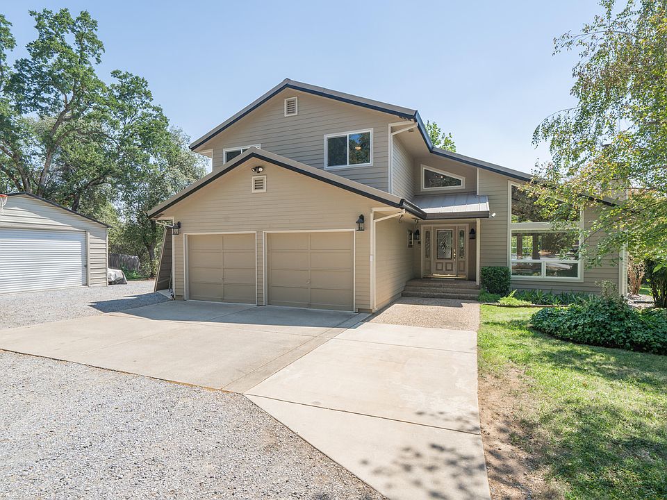 Beautifully updated three-bedroom, three-bathroom home that sits on a gated two manicured acres with views of surrounding mountains and overlooking the east fork of Stillwater Creek. The updated kitchen contains granite countertops, with cabinets that offer plenty of storage space. The living room has tall vaulted ceilings with natural sunlight for a warm comfortable feel. There is a detached guest unit with a full bathroom, perfect for an out-of-town visitor, family member, office or pool house. Relax on the covered patio and enjoy grilling, sitting in the hot tub after a long day or just relaxing with family and friends. Enjoy the views on your own private patio off the primary bedroom. The 20' x 23' shop is perfect for storage or a place to store all your toys. The yard is well maintained with a park like feel with an expansive lawn and a large gravel driveway area for parking. Located only 3 minutes from Tierra Oaks Golf Course, 10 minutes from Redding and 12 minutes to Lake Shasta. This property has so much to offer it is a must see.