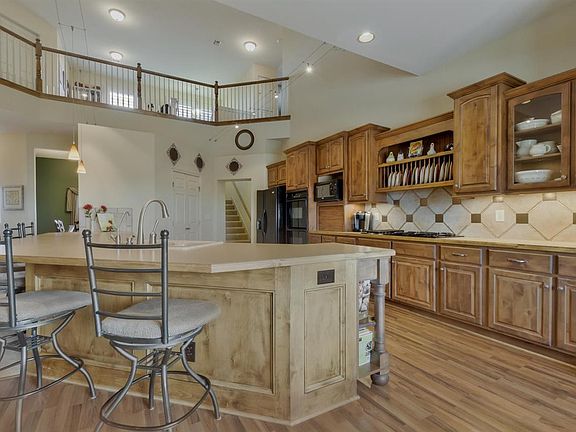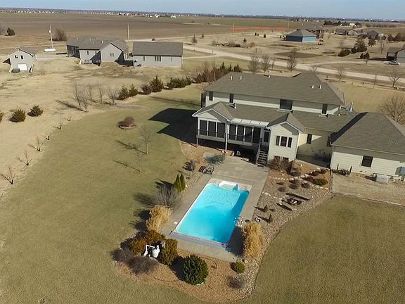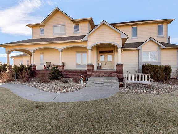 Country living at its finest! Sprawling 5,384 sq ft, 1.5 story, custom built, one owner home on 4.9 acres with 7 Bedrooms, 4 full baths and an in ground pool. Fantastic sunrises, sunsets and star gazing await in this quiet setting on cul de sac. lot with over 100 young trees. Located in the prestigous Goddard schools, no specials and just minutes from Kellogg. Open floor plan with expansive ceilings and loft, split bedroom plan and chefs kitchen. Kitchen features gas stove with griddle, double ovens, walk in pantry, abundant counter space including a 14 ft peninsula, plate racks, china display, under cabinet lighting, touch faucet and all appliances remain. Access to the sun room is just off the kitchen through french doors, has screens to determine the amount of fresh air and sunlight and overlooks the in ground pool and property. This area will surely be the gathering place for family and friends with space for several tables and seating. Main floor has master bedroom, guest room, living room with fireplace, formal dining and breakfast nook,laundry large windows, expansive ceilings and all window treatments remain. Master bedroom has 10 ft ceilings, is spacious and opens to the sun room. Walk in master closet is large and has custom California closet design. Master bath has custom tile shower, soaker tub, double sinks, water closet and large window. Laundry is not a chore in this 9 x 10'7 room with window to front yard, custom tile work, utility sink, drop zone, ample cabinets, pull outs for sorting laundry, hidden ironing board and laundry chute. Upstairs features 3 bedrooms, 2 loft relaxing areas for media and reading, and plantation shutters. Two of the upstairs bedrooms have a Jack and Jill bath, custom walk in California closets, large windows and balconies. Basement is ready for entertaining with rec room, wet bar, fireplace and walk out. Basement also has full bath, 2 bedrooms, one with walk in closet, fabulous storage areas and a utility sink. The pool is a sport pool with great concrete patio surrounding, has auto cover (motor for auto cover new in 2016) and chlorine generator (new in 2016). The landscaping and yard are meticulously maintained with sprinkler system and irrigation well and has a 2000 sq ft garden plot. The 3 car side load garage is over sized and has built in cabinetry and windows. Central vacuum, whole house generator, water softener, whole house water filter, reverse osmosis for drinking water, hot tub plug, RV plug, security system and battery back up sump pump are some of the additional things to know about this home. Come see for yourself and be amazed!