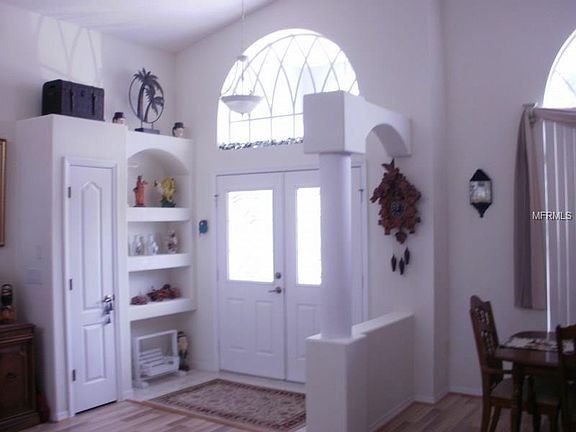 Located only 1 mile to Suncoast Pkwy with a large master bedroom. Master bath has a garden tub, a handicap walk-in shower, raised double sinks and private toilet area with a pocket door. 8 ft. pocket sliding glass doors in the great room that lead to a large screened lanai with a 12 x 24 ft. inground pool with a security fence, pool shower, and above ground jacuzzi. Many plant shelves throughout. An 11 x 11.6 nook in the kitchen overlooking the lanai. Newly painted exterior. No fees. Includes front load washer and dryer.