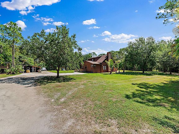 Serenity meets Equestrian Paradise: Rustic Charm in Jupiter FarmsEscape the hustle and bustle of city life and embrace the tranquility of country living in this stunning 3 bedroom, 2 bath log cabin-style home nestled within the esteemed equestrian community of Jupiter Farms. Situated on over 1 acre of meticulously maintained land, this private sanctuary is enveloped by lush palms, offering a picturesque oasis for those seeking a peaceful retreat.As you drive through the gated entrance and meander down the winding driveway, you'll be greeted by the inviting facade of this charming residence. The owner has purchased concrete hardy board siding and impact windows for any upgrading if desired. Step inside and be captivated by the warmth and character of the interior, featuring soaring cathedral ceilings, exposed wooden beams, and a magnificent floor-to-ceiling stone wood-burning fireplace, perfect for cozying up on chilly evenings.