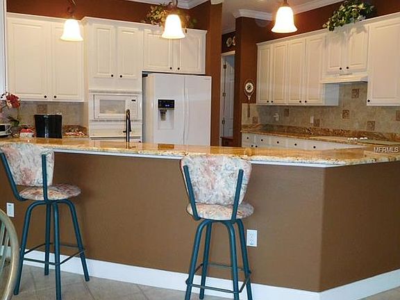 CBS Hampton Model 2 Bedrooms & 2 1/2 bath and den. 8 foot leaded glass entry doors open up to a tranquil eastern exposure looking out from your newer low E glass windows in the lanai to a water fall and paver patio. Private well for your lawn, curbing around landscaping, zorsa grass, split floor plan with master onsuite that has double door entry, it''s own A/C system. Tray ceiling and newer higher double sink vanity with granite counter top, walk in closet and wider crown molding on the ceiling. Upgraded kitchen cabinetry with crown molding, granite counter tops, tile blacksplash, recessed lighting, tankless gas water heater, oversize garage enough room for 2 cars and golf cart storage. Painted floor in garage with a side door, sliding screens on the 2 car garage with keyless entry. Painted driveway and walk. Too much to list!! Price to sell!! Don''t miss it.