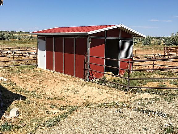 Horse property. Selling this property is on hold till Spring. I have a barn full of hay and items that cannot be moved till the snow melts. But feel free to contact me. 2 Bedroom, 1 Bathroom Manufactured home sitting on 4 1/2 acres. Just 10 minutes from town. CoverAll building for hay storage and equipment. 12x36 run in shed with 12x12 tack/shop with electricity. Electrobraid fencing. 12x16 MD barn with run, 440 Fencing. Weatherport building housing a FodderWork fodder machine. Bar-Bar-A automatic waterer. Raised garden beds. Irrigation available. Arena