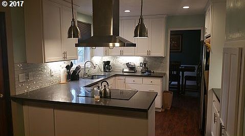 Large 4+ bedroom home, 2.5 baths, laminated wood flooring, Den with built ins, remodeled kitchen with eating area, stainless appliances,formal dining room, huge master suite with sitting area and 3 closets,roof top deck, newer furnace and water heater & A/C, RV parking, hot tub