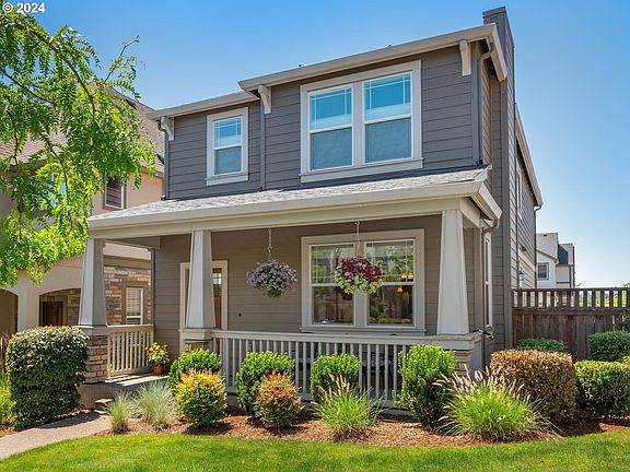 Welcome to your new home in the desirable River Terrace community. This home feeds into Beaverton schools including, Scholls Heights Elementary and Mountainside High School. Situated on corner a lot, the home has extra windows allowing more light to flow into the house. Open floor plan with 8ft doors and 10 ft ceilings make this home feel spacious and airy. Cozy fireplace in living area opens to dining area and kitchen. Well equipped kitchen comes with stainless steel refrigerator, dishwasher, gas stove, quartz countertops and a large island. Upgraded wood flooring throughout the main floor. Upstairs you will find a small media area, laundry room, 4 bedrooms and 2 full bathrooms. Hall bathroom includes soaking tub. Primary suite includes a large-walk in closet, bathroom with shower and long vanity with 2 sinks. Two car garage and side yard with patio completes this home. Community features include multiple parks, playgrounds, pool, well equited gym, meeting room and basketball court. Conveniently located near Murray Hill, Progress Ridge and Washington Square for shopping, dining and entertainment. Ask about the 2.5% assumable VA loan!!