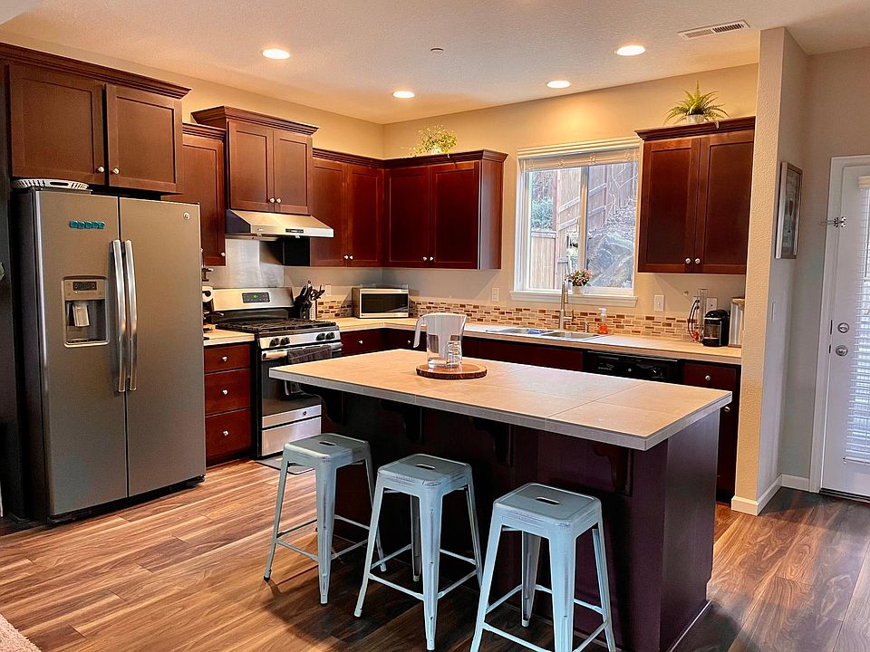 Great location on Bull Mountain Tigard . This newly built three level single family house is at a quiet dead end with beautiful view of Mt Hood at your front door. Walk to parks and elementary school. Minutes away from stores, restaurant, gyms, etc. The house offers tons of upgrades including a new covered composite deck that is perfect for entertainment. Customized walk-in closet in master bedroom. Deep two car garage with heavy duty wall shelves. We put our heart in this lovely home and you will see it! Three level structure. Garage and entryway on the ground, kitchen and living rooms on the second that walks out to the deck and yard, three rooms and laundry on the third. We don't offer in-house tour at the moment since I'm in the high risk group. Only video tours can be scheduled. The house will not be furnished. Washer and dryer and kitchen appliances are included. Renter responsible for all utilities. No HOA but we do require tenant to take care of front yard which has a small lawn. Well potty trained small pets are welcomed. Additional pet deposit is required. No outdoor cats. Credit report and background is required at your cost. Thank you.
