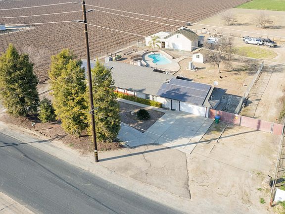 Located just outside of city limits in Tulare is this 2.65 acre property. The property features a 3 bedroom 2 bath home with LARGE bonus room and large walk in closet making it a 4 bedroom home. Property features a large fenced yard, beautiful swimming pool, large shop/barn/stables with upstairs additional living space, large pasture and Newer 400' well! Inside the home you'll find hard wood flooring and tile throughout, great for family and furry friends. The home has a formal living space with cozy fireplace. Off the living room is a double door entrance to another large living space. The kitchen is updated with granite countertops, tile backsplash with lots of cabinet space! Off the kitchen you'll find the large laundry/mudroom. Down the hall are two large guest bedrooms, a beautifully updated full half bathroom and the master suite with ensuite style bathroom! Your Country Dream Home awaits!
