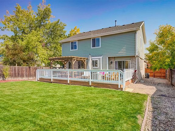 5 bedrooms, 3 bathrooms in this updated modern 2-story home located in Broomfield. Immediate curb appeal. Huge backyard with oversized back yard deck and pergola canopy. Neutral paint tones grace this well maintained and decorated home. Kitchen features white cabinets, granite counters, full SS appliance package. Home features newer windows. Formal dining room with access to back deck. Great room is bright and open to the kitchen. Upper level features 4 large bedrooms, a full bath with beautiful subway tile in tub area. Grand Master bedroom has ceiling fan, ensuite master bath, double vanity, walk in closet, subway tile style in shower/bath. Basement is finished with an open bonus space/family room, an additional non conforming bedroom and laundry area that includes a washer and dryer as part of the sale. This home won't last long!