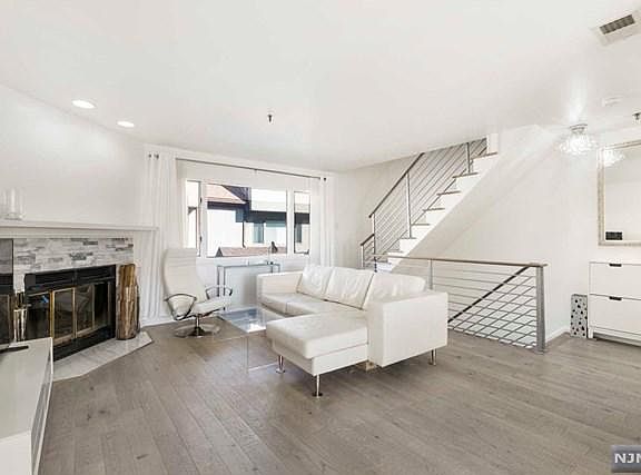 Amazing and totally renovated Condo in the beautiful town of Fort Lee, NJ. This south-facing duplex style home has abundant natural light, is located on a dead-end street, is pet friendly, and has laundry in the unit. The Condo consists of spacious two bedrooms, two full bathrooms, and a half bathroom. 1175 square feet, wood-burning fireplace, central AC, new French Oak Pebble hardwood floors, and modern kitchen with quartz countertops. Beautifully renovated bathrooms, doors, light fixtures, metal handrails, and much more. The low monthly maintenance fee includes one assigned parking and water. Walking distance to Manhattan express bus, close to shops and schools, and a few minutes to the community center. You get all these plus top-rated Fort Lee Schools.