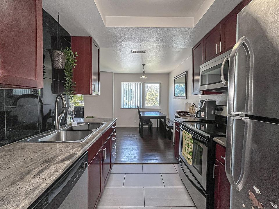 This turn-key condo in a private + secure gated complex is conveniently located in the heart of Hayward. This unit features an open & spacious living/dining area, laminate flooring throughout, granite counter tops in the kitchen and bathrooms, in-unit laundry, and a fire place. The community features a swimming pool, two fitness centers, a courtyard, BBQ area, a secure gated garage, and 24-7 camera surveillance. The HOA fee covers the unit's water & garbage as well. Walking distance to Downtown Hayward, easy commute to both 880 and 580 freeways, and within minutes to all schools, Trader Joe's and Safeway. Be sure to view the walkthrough video!